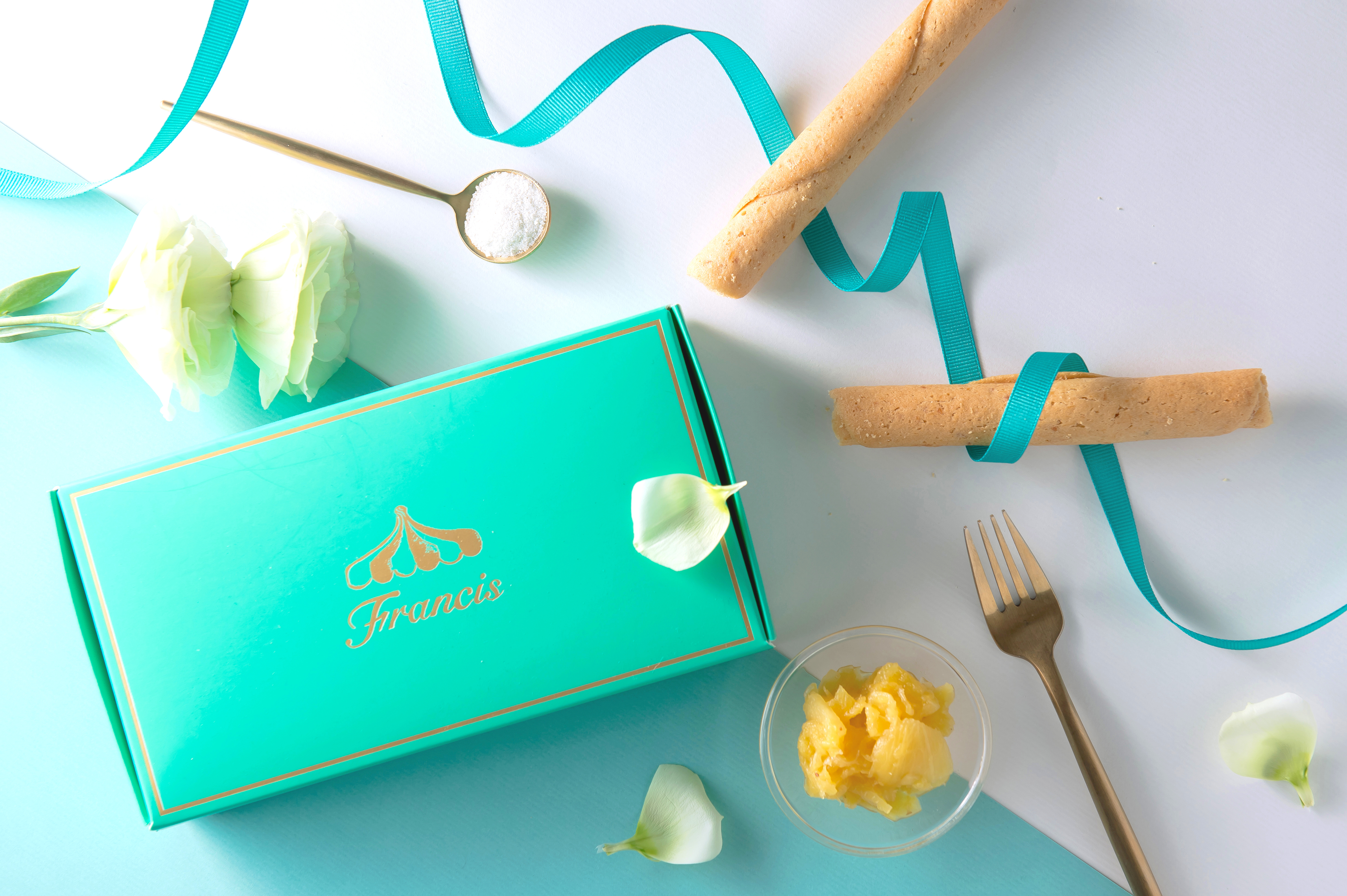 Cigare,法文意為雪茄,起源於擁有百年歷史的法國製餅家族,此種法式點心因外型近似菸捲而得名,帶有濃濃法式風味,簡單優雅易於拿取的造型,酥脆的捲餅散發著醇厚的奶油和蛋香氣,咀嚼間,鳳梨果肉的酸甜帶出清爽輕盈的風味,層層堆疊的細膩口感,一口一口象徵事事旺旺來。